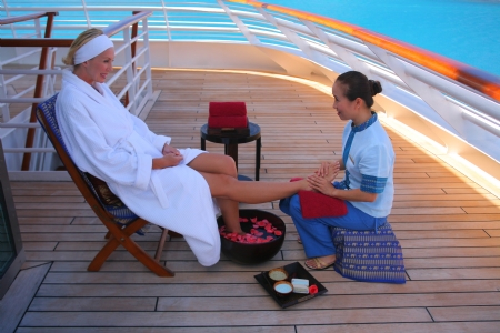 Welcome Aboard Cocktails & Hors D’Oeuvres – Sunriser’s Coffee – Breakfast – Poolside Sandwiches – Lunch – Afternoon Snacks – Tea Service – SeaDreamer’s Club Reception – Evening Cocktails & Hors D’Oeuvres – Captain’s Reception – Dinner – Le Menu De Degustation – 24-hour “Small Bites” Menu – Spa Menu and SeaDream’s Champagne and Caviar Splash.